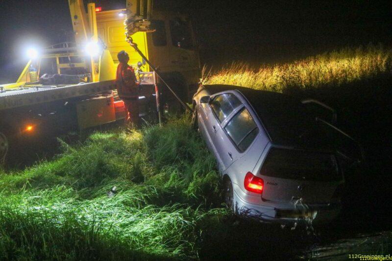 Auto eindigt in sloot, inzittenden komen met schrik vrij