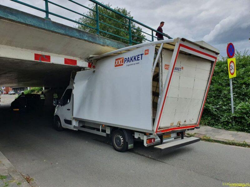 Pakketbezorger rijdt zich klem onder viaduct bij Oosterhavenbrug (Video)