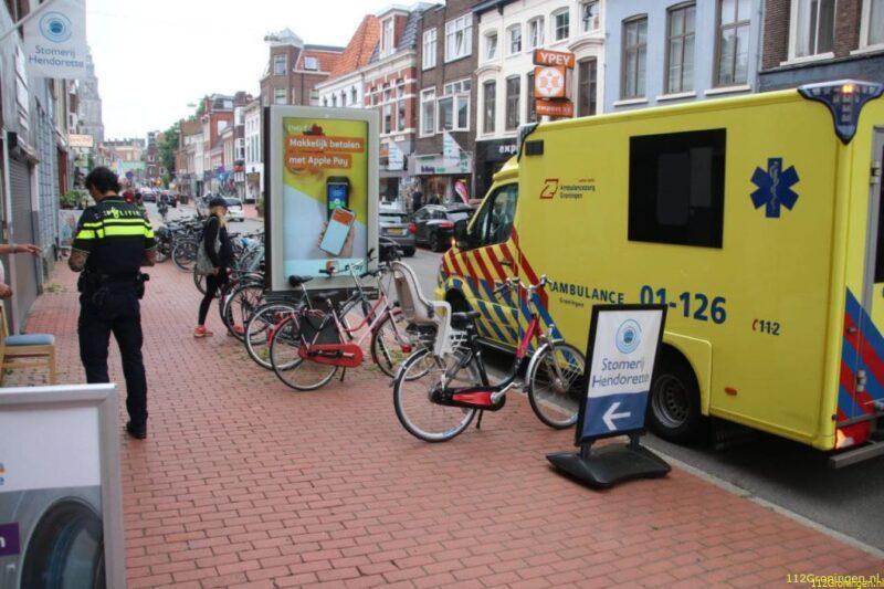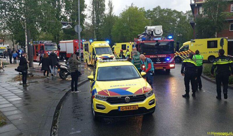 Bij een verkeersongeval in de Nieuwe Ebbingestraat in de binnenstad van Groningen is dinsdagochtend een