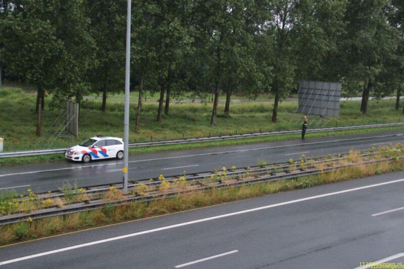 Auto in de slip op de A7 bij Groningen