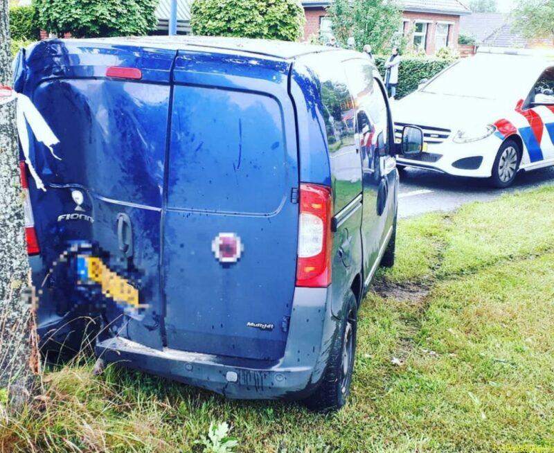 Op de Nieuweweg in Nuis is vanavond een automobilist met zijn voertuig tegen een boom