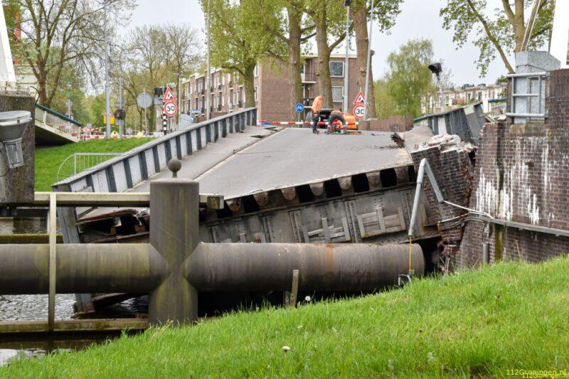 Schip ramt Gerrit Krolbrug, schipper zag vermoedelijk de brug niet (Video)