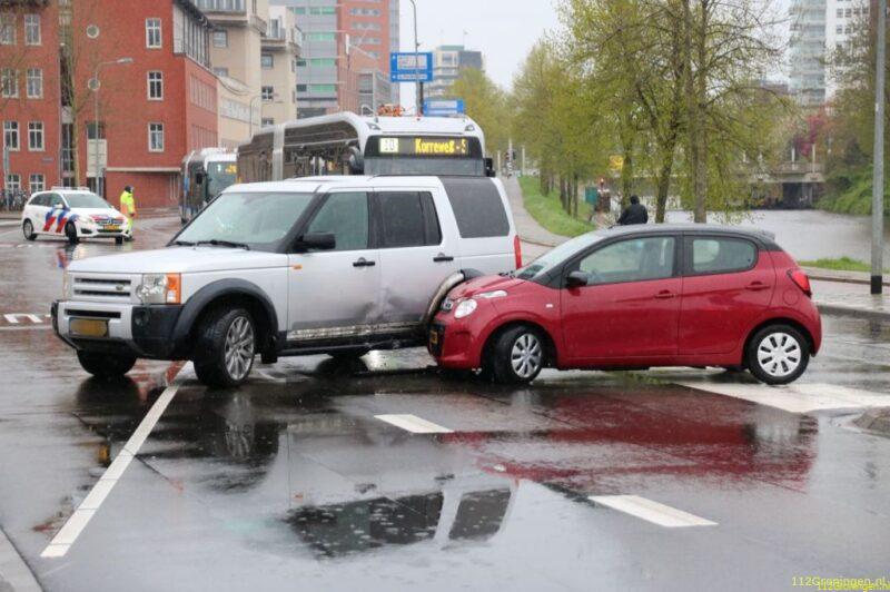 Zaterdagmiddag zijn twee personenauto's met elkaar in botsing gekomen op de Stationsweg nabij het Hoofdstation