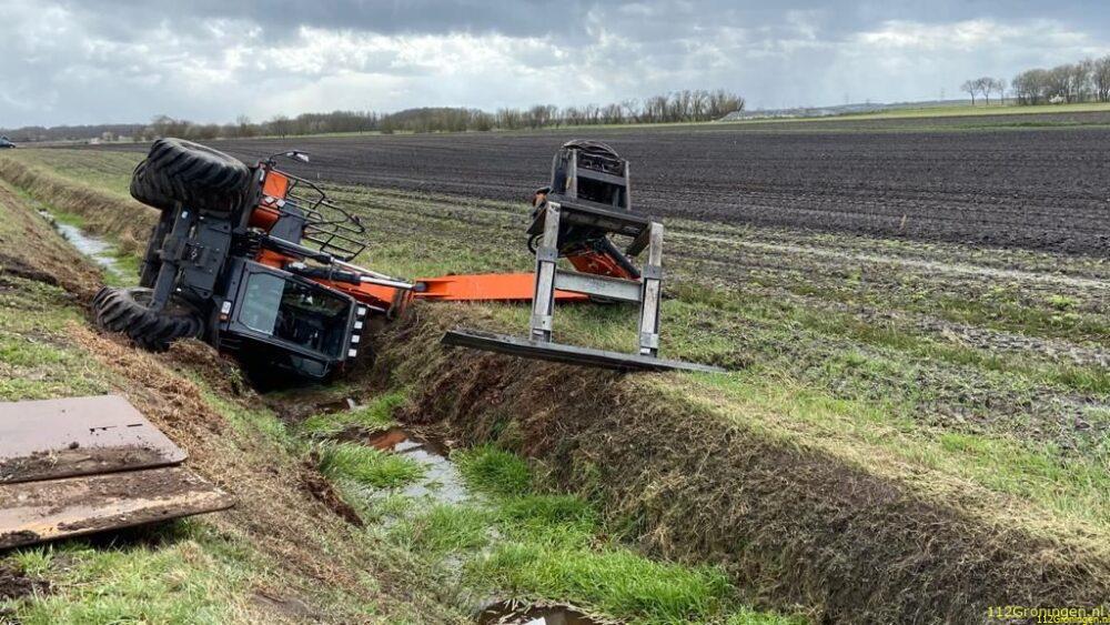 Aan de Onstwedderweg in Nieuwe Pekela raakte dinsdagmorgen om 11:40 uur een mobiele kraan op