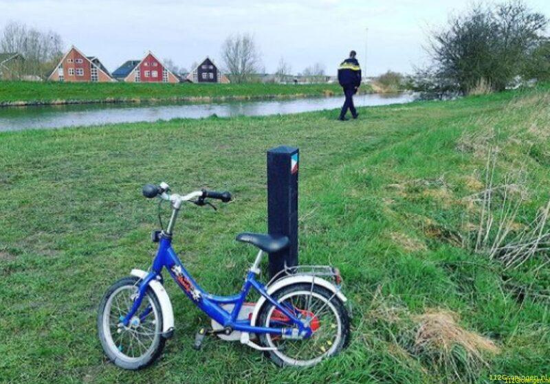 De politie trof donderdagmorgen dit kinderfietsje aan op het Jaagpad bij Paddepoel, vlakbij de Zernikebrug