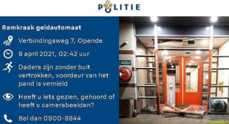 Afgelopen nacht, 8 april 2021, omstreeks 02:40 uur, heeft er een plofkraak plaatsgevonden aan de