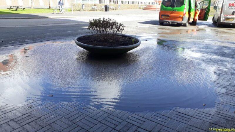 Bij graafwerkzaamheden naast de Van Olsttoren op de Zernike Campus is maandagmiddag een waterleiding geraakt.