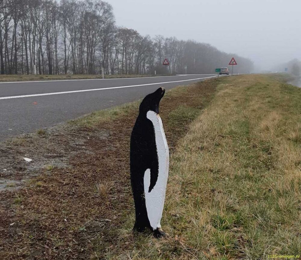 Melding van een pinguïn langs de N34 bij Zuidlaren. Meldt Politie AAenHunze via Twitter dinsdagmorgen.