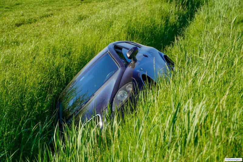 Automobilist rijdt sloot in op Molenweg in Wedde