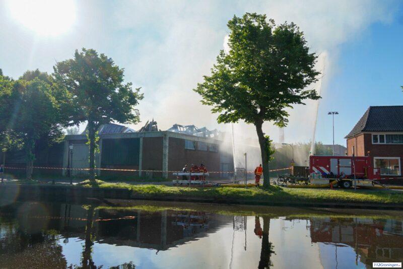 Oude Pekela – De brandweer is dinsdag nog steeds volop bezig met het blussen van