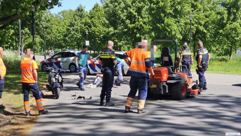 Groningen- In het Stadspark heeft een ongeval plaatsgevonden waarbij een scooter en een grasmaaier waren