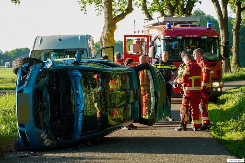 Auto belandt op de zijkant bij Vlagtwedde