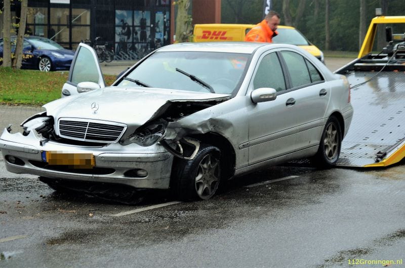 Bij een verkeersongeluk maandagochtend op de Paterswoldseweg is een auto op de verkeerslichtinstallatie gebotst. Dat
