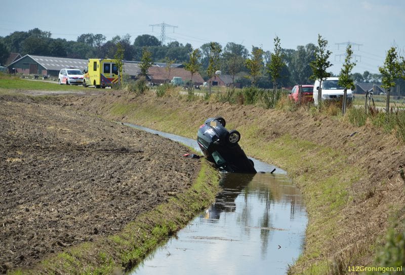 Vrijdagavond is er opnieuw een auto in de sloot beland bij de oprit A7 nabij