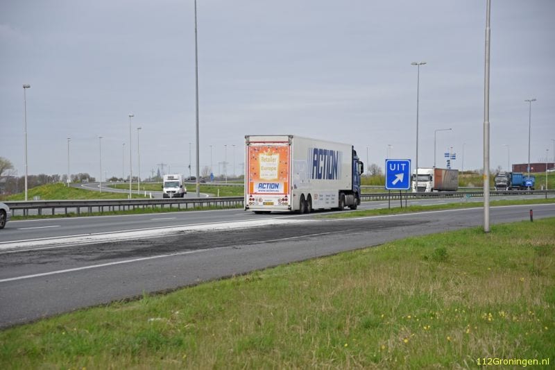 Vrachtwagen verliest grote hoeveelheid teer op afrit en rotondes A7