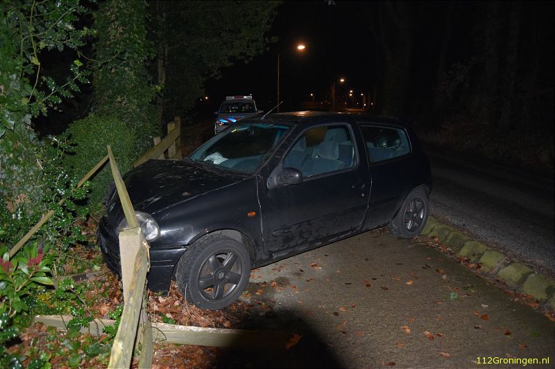Op de Zuidlaarderwerg in Noordlaren is zondagavond omstreeks half tien een auto tegen een tuinhek