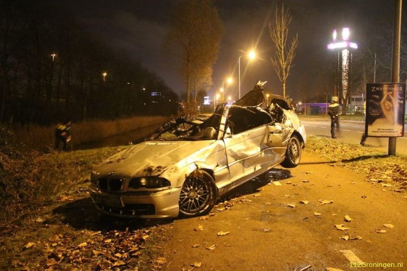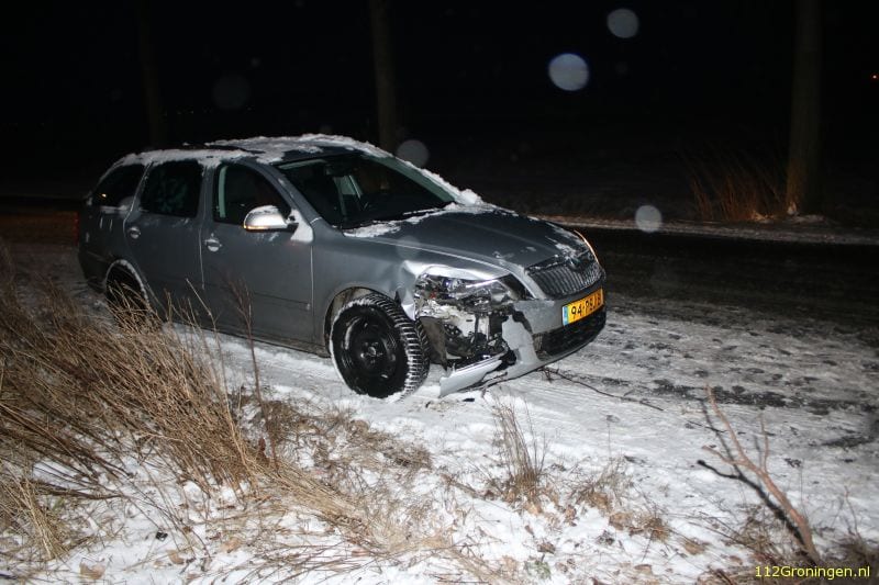 Op de Stadsweg in Ten Boer is zaterdagmorgen een auto van de weg gegleden door