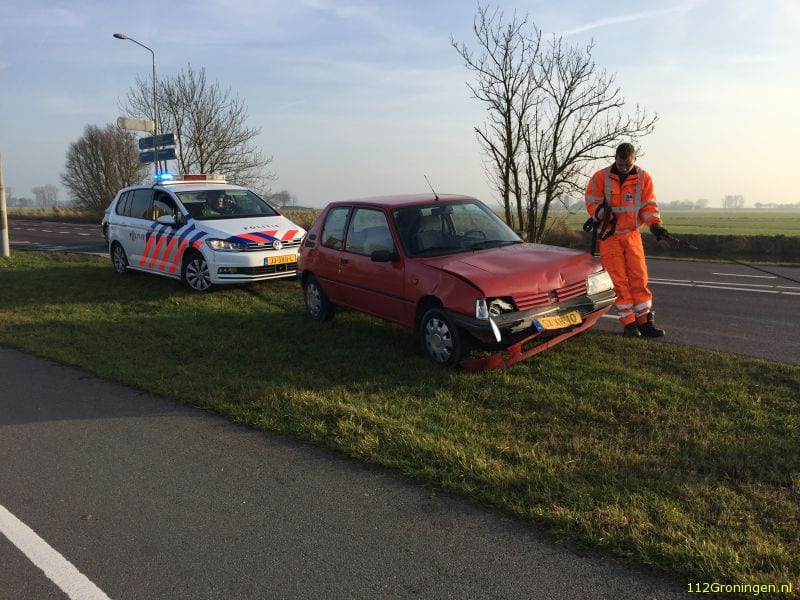 Op de afslag van de A7 tussen Hoogezand en Kolham is donderdagmiddag een auto in