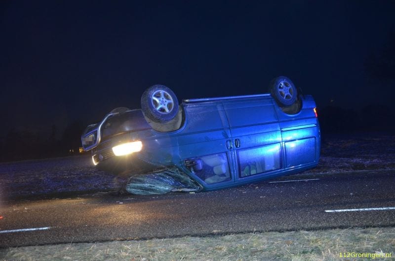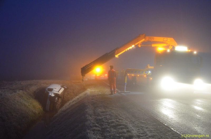 Auto in de sloot langs de A7 bij Kolham