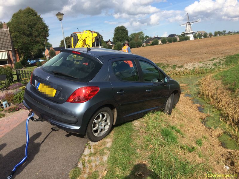 Maandagmiddag is aan de Valgeweg nabij Sauwerd een man met zijn auto boven de sloot