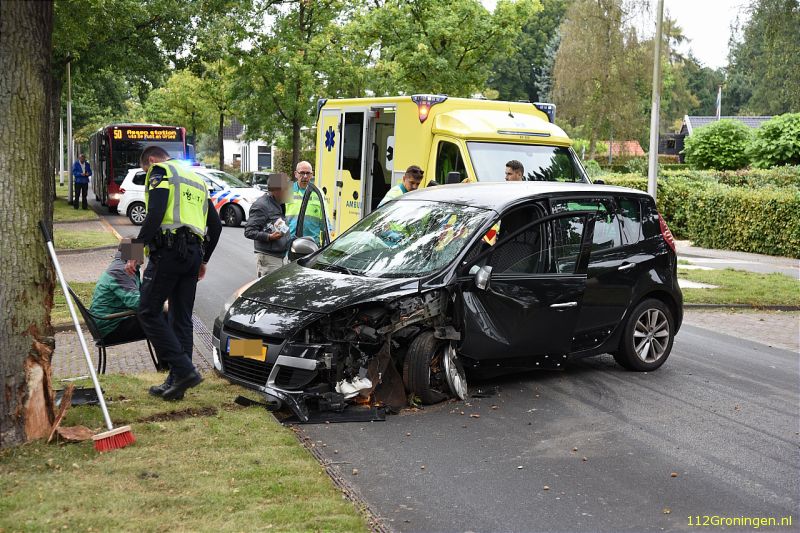 Auto botst tegen boom in Haren
