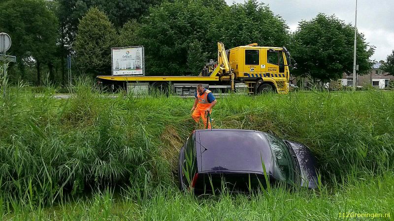Auto komt in sloot bij Delfzijl