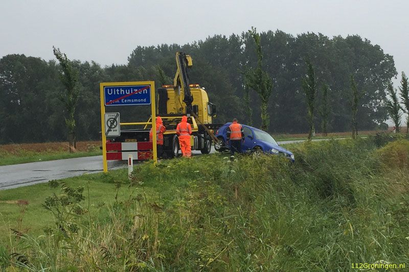 Auto uit de bocht bij Uithuizen