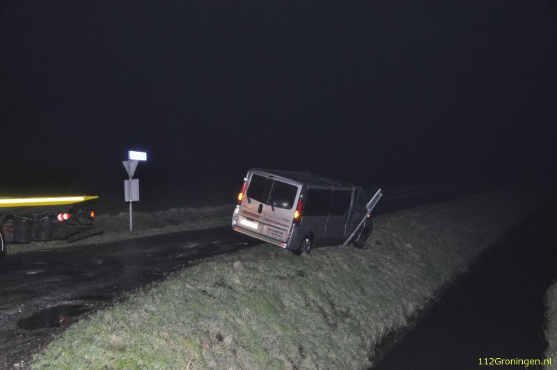 Zondagavond is er op de Oosterlijke polder opweg een busje in de berm belandt.