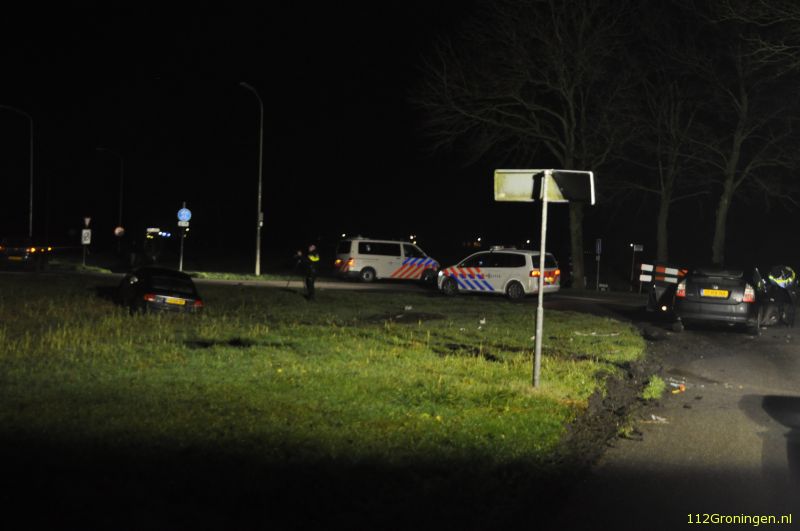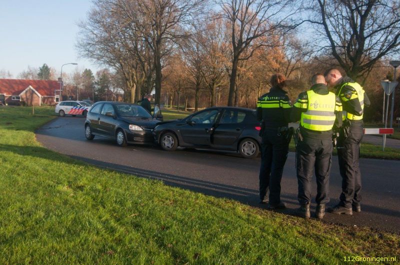 Bij een ongeval aan de Wethouder Venemasingel in Muntendam zijn woensdagmorgen twee auto's frontaal op