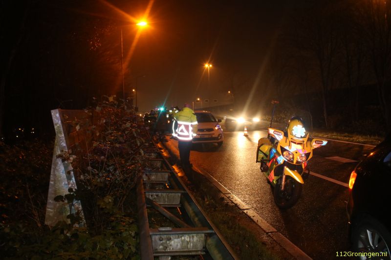 Een automobilist die donderdagavond vanuit de richting Drachten naar Groningen onderweg was is door onbekende