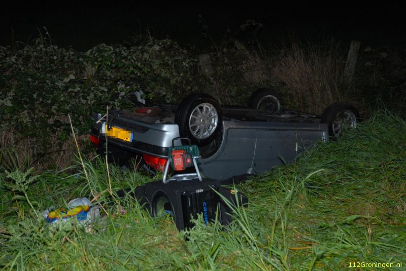 Bij een eenzijdig ongeval zijn vanavond de inzittenden van een auto gewond geraakt.