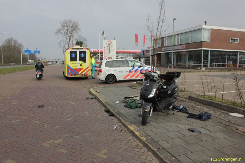 Een scooterrijder heeft dinsdagochtend heel veel geluk gehad bij een ongeval op de Friesestraatweg in