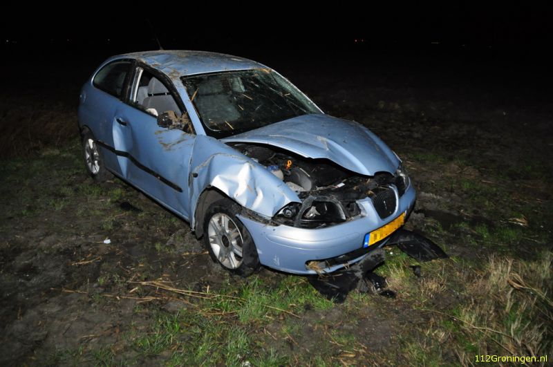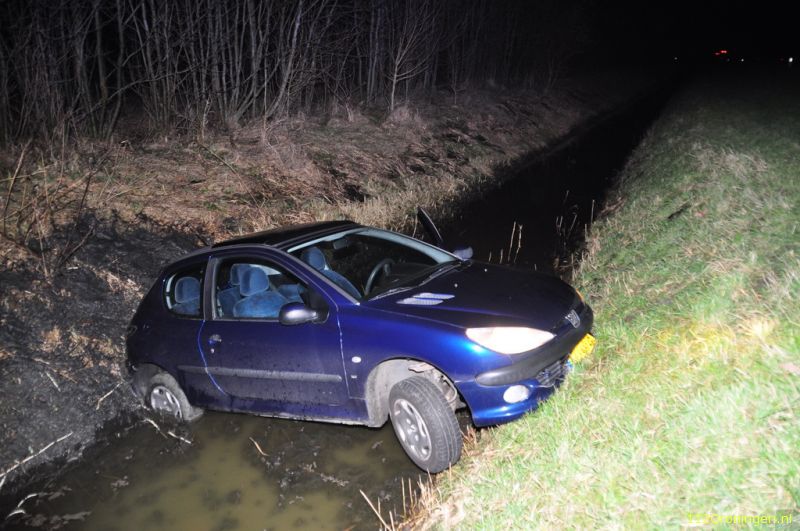 Dinsdagavond is een jongeman met zijn auto naast de weg gekomen. Hij reed de sloot