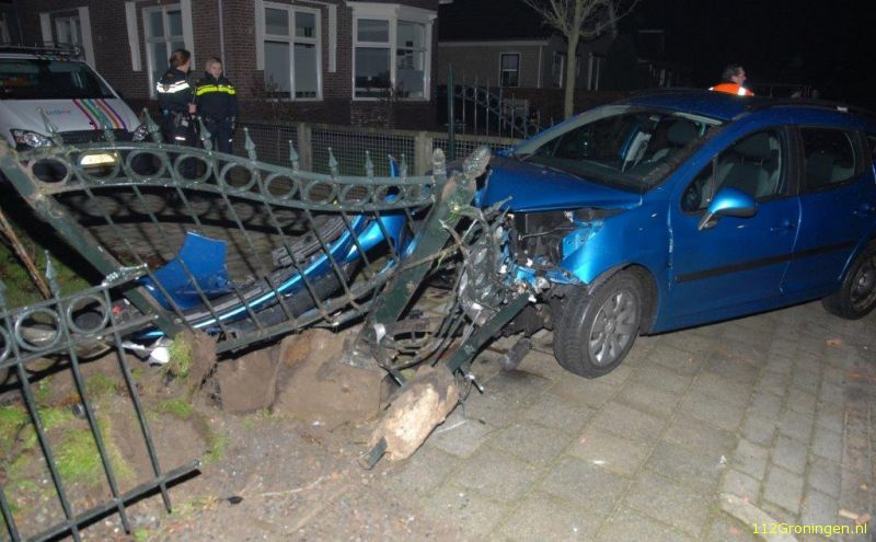 Een joy-rit van twee jonge automobilisten uit Groningen eindigde in de Nieuwjaarsnacht in een voortuin