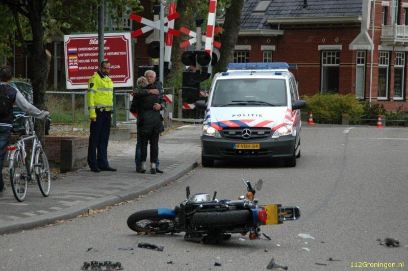 Auto en motor botsen in Uithuizermeeden 1 gewonde (Video)