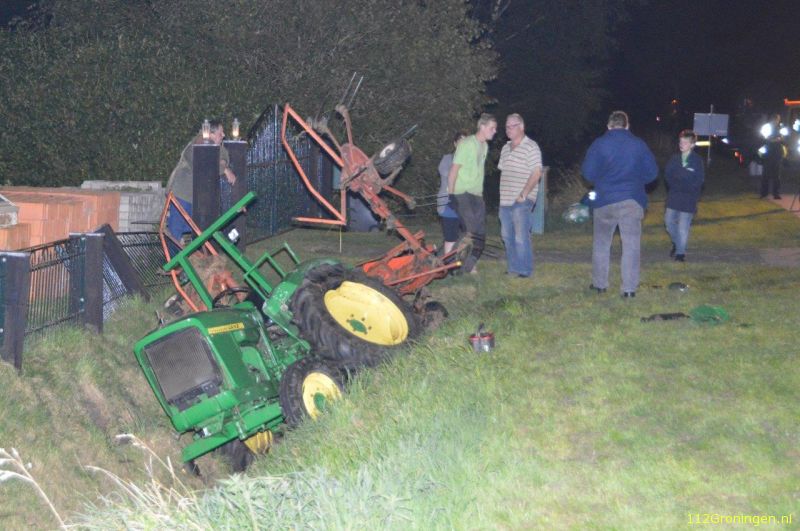 Tractor belandt in sloot bij aanrijding Bellingwolde (video)