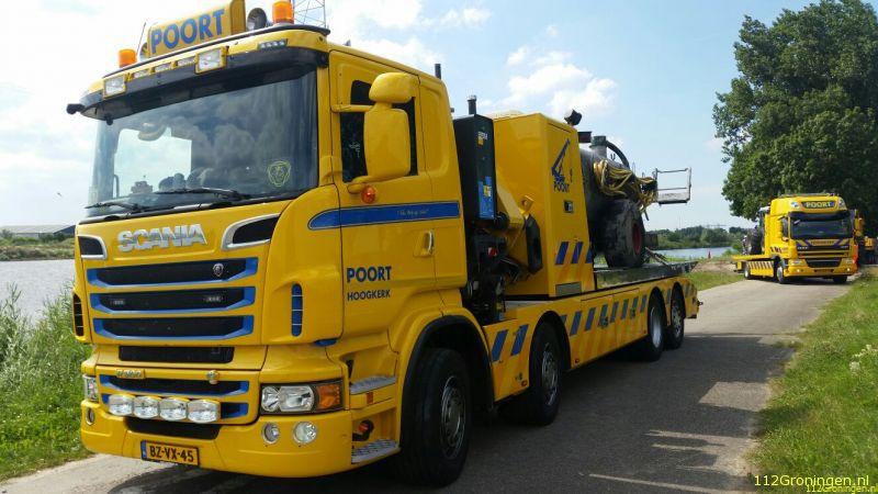 Het scheepvaartverkeer in het Winschoterdiep heeft dinsdag wat hinder gehad van een trekker te water
