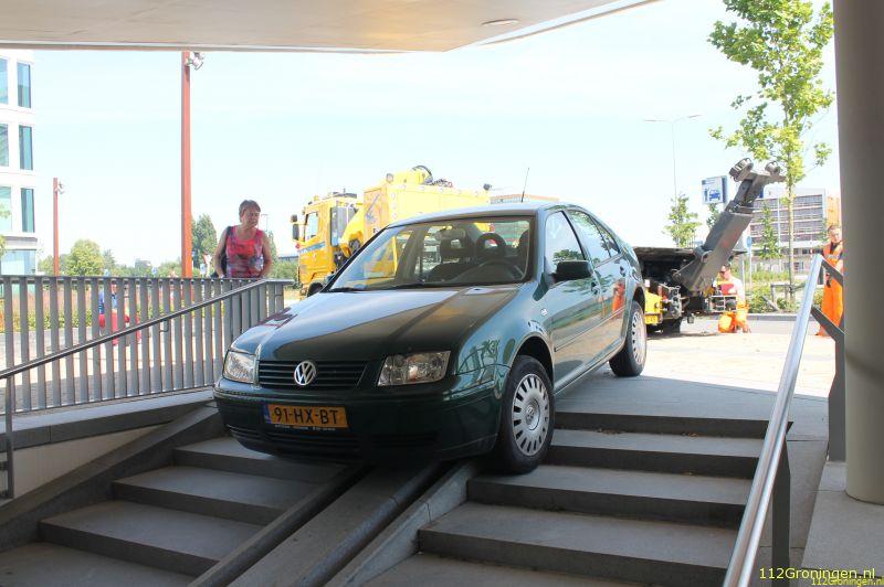 Auto rijdt van trap bij station Euroborg
