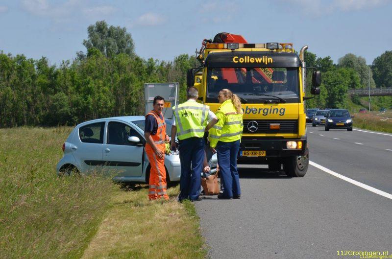 Op de A7 bij Nuis is zaterdagmiddag een auto van de weg geraakt en in