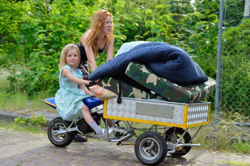 Spurt-trein last van kermiswagen op spoor bij Bunde