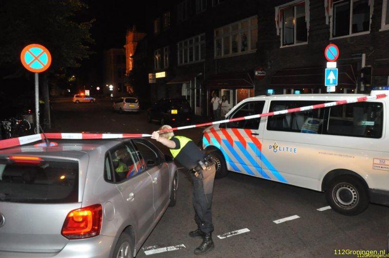 Op de hoek van de Herestraat met het Gedempte Zuiderdiep knalde in de nacht van