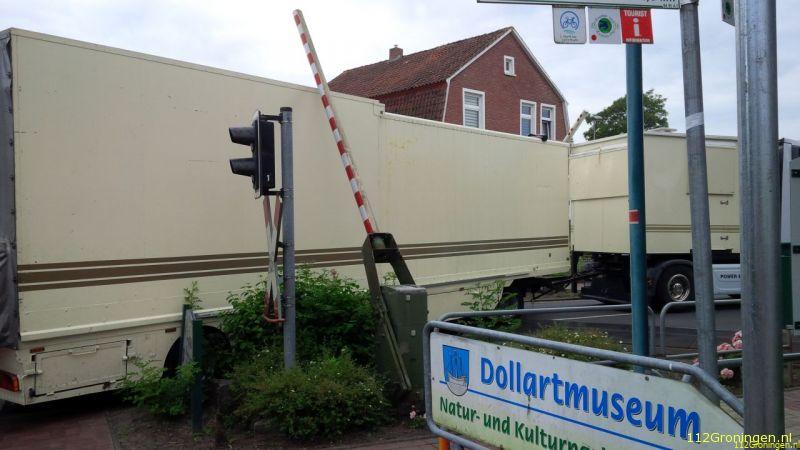 Op de Neuschanzerstraße in Bunde (Duitsland) heeft een Kermiswagen zich bij het verlaten van een