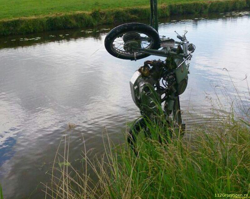 Zondagmiddag is tijdens een oldtimerrace een motor het diep ingereden bij Winsum.