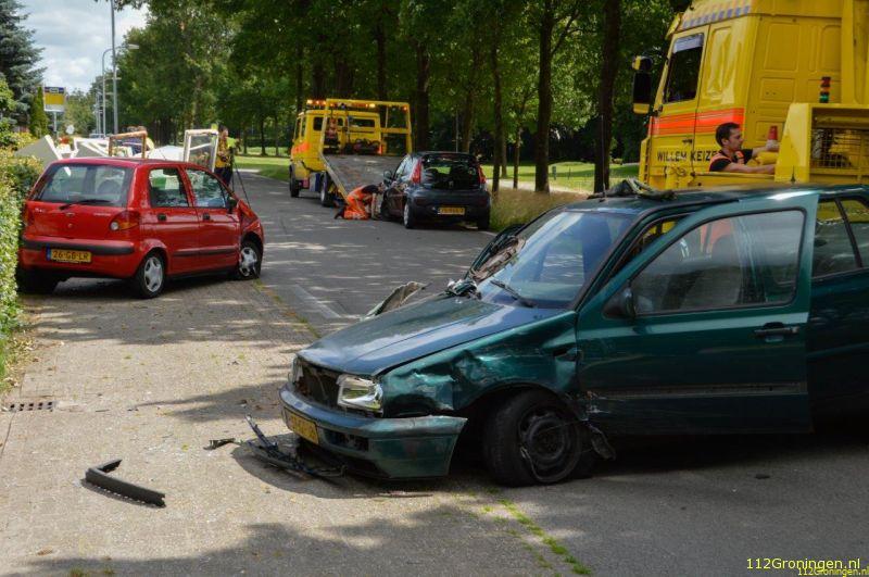 Op het Zuiderdiep in tweede Exloëmond is dinsdagmiddag een ongeval gebeurd waarbij drie auto's en