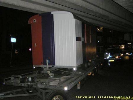 112-Flits: Bouwkeet vast onder viaduct Groningen