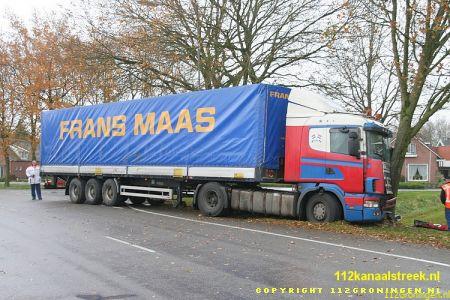 Vrachtwagen rijdt tegen boom in Onstwedde