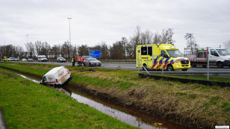Bedrijfsauto belandt op de A7 in sloot t.h.v. afslag Westerbroek