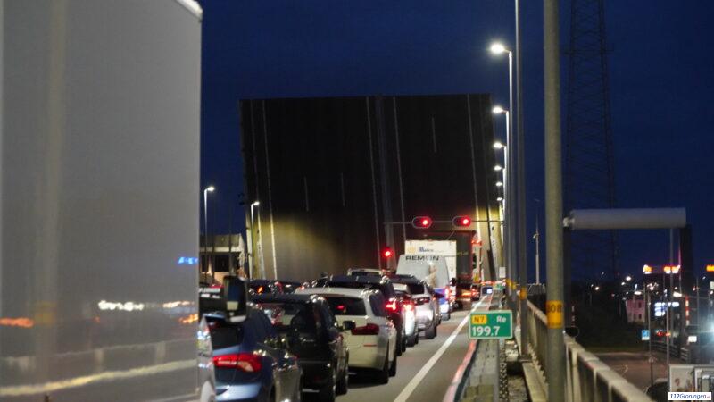 Groningen – De hoge Euvelgunnerbrug in Groningen stond dinsdagavond in storing, het brugdek kon door