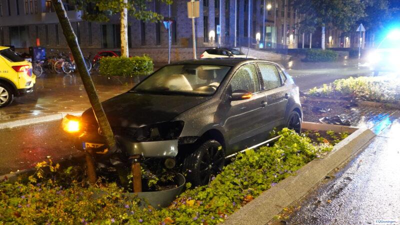 Auto botst tegen boom op Boumaboulevard in Groningen