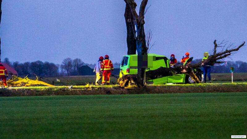 Storm Floriane: Boom valt tegen rijdende auto op de N362 bij Nieuwolda, 1 gewonde